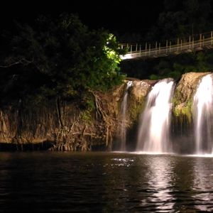 パロネラパークは真っ暗なため、小さなライトで足下を照らしながら歩きました。滝とお城がライトアップされており、とても幻想的な雰囲気でした。ライトアップも手元のライトも消して空を見上げると、星がたくさん輝いており、初めてあんなにきれいな星空を見ることができました。