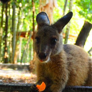 ワラビーですが、これがホントに可愛くて、触っても逃げないですし、餌の人参を渡したら可愛く手に持って食べてくれました。ホントに可愛かったです。あと、お腹の袋に赤ちゃんがいるカンガルーも可愛かったです!