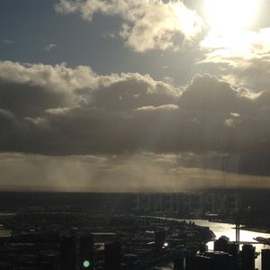 ホテルからほど近いところにユーレカ・スカイデッキ88が見える。今日は少々天気が悪い。夕焼けを楽しみにしていたが・・・。エレベーターで上に上ると、案の定とんでもない雨が降ってきた。しかし、そこには幻想的な光景が広がっている。そして雨が上がりメルボルンの市内が見えてきた。メルボルンはきれいな街だ。メルボルン観光でここは外せない。
