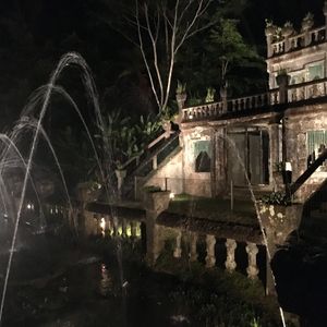バスの道中では、パロネラパークの歴史を教えて頂いたので、実際に目の当たりにした感動が大きくなりました。真っ暗な夜道を小さなライトで照らして歩くのは冒険っぽくてドキドキします。ライトアップされた滝はとても荘厳で、最後のハイライトであるお城を見せて頂く演出もとてもロマンチックです。随所でガイドさんが記念撮影をしてくださいます。
