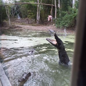 クロコダイルの餌付けは見ものです。飛びかかってからのデスロール。すごいです。