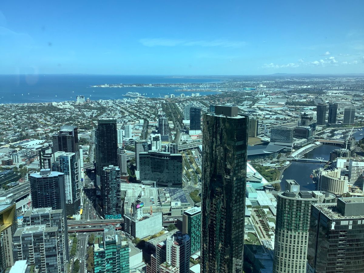 11時過ぎに宿泊先のヒルトンホテルから歩いて向かいました。11時40分ごろスカイデッキ入り口に到着、すでに何人かの方が開場を待っていました。12時に開場し受付でバウチャーを見せ入場券と引き換えエレベーターに。開場直後の入場だったためか混雑なく展望フロアに到着、周囲を眺めることができました。天気が良かったのでメルボルンの街中はもちろん、遠く港や海、地平線近くの山並みなどの眺めまで見られました。テニスの全豪オープン会場が間近に見られて良かったです。
