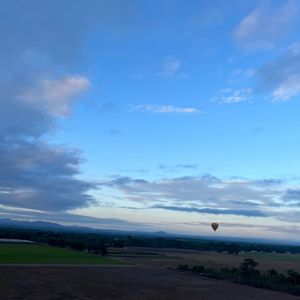 熱気球に約20名が乗り込み、ゆっくりと空の旅を楽しむことができました。上空から見える広大な緑の草原、畑、民家など360度パノラマの景色は、改めてオーストラリアの大地の広さを実感しました。気流に乗ってどこにたどり着くかわからないということでしたが、足場の良いところに降り立ちました。降りてからの片づけ作業で少し服が汚れましたが貴重な体験ができました。また軽食も用意されていて、広々とした大地の上で頂くシャンパンやスナック、果物は格別でした。写真も沢山撮ったいただき、参加して本当に良かったと思います。