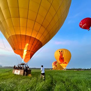 フワーッと浮かんだ熱気球は、あっという間に高度を上げて、雲の上に行きました。正直、ベルトも何もないので足がすくみました。でも、飛行機のように窓や壁に遮られない視界は、夢を見ているかのような光景で、不思議な気持ちになりました。上がったら、下がったりを繰り返しながら、色々な風景、朝日、雲に影を映す熱気球はほんとに映え〜!!しかなかったです。ガイドのトニーさんはとてもいい人で、ツアー客を気遣いながら、テキパキ行動されていました。操縦士のオージーの方々もとても面白く、和気あいあいとした雰囲気の中で楽しむことができました。一生の思い出になりました!