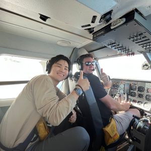 パイロットの方もノリが良く、上空に居る際に後ろの席に座ってきた夫と写真を一緒に撮ってくださりました!