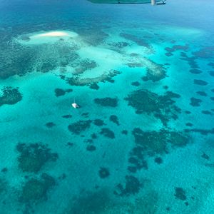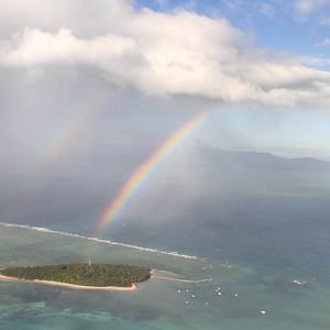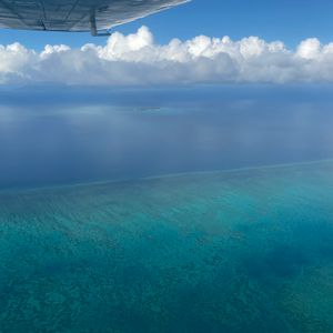 雨予報でしたが、離陸するころには晴れ、空から綺麗なグレートバリアリーフを見ることができました。
