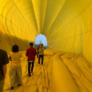 着陸後は、気球の中に入って記念撮影、お片付けを手伝いますので汚れてもいい服での参加がおすすめです。