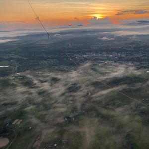 雨だったので、飛べないかとおもいましたが、雨雲レーダーをみてとべるポイントで飛んでくださりました。朝日は無理でしたが、マクドナルドで雨雲が過ぎるまで待って、いざ出発!