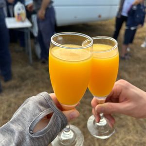 熱気球に1時間ほど乗って着地したあとは、みんなで気球を折りたたんでしまって、そのあとオレンジジュースかシャンパン(混ぜてる人もたくさんいました笑)で乾杯をしました。これにも歴史があるらしいので興味のある人は聞いてみてください!