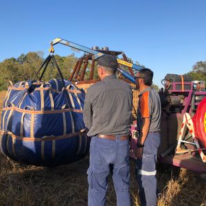 スタッフの方が気球に熱を入れて膨らませ、乗る準備ができていきます。1人ずつ順番に乗り込み、出発です!!