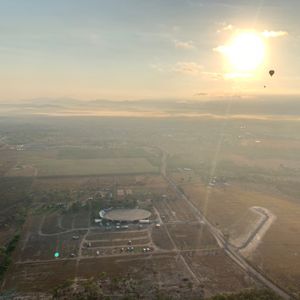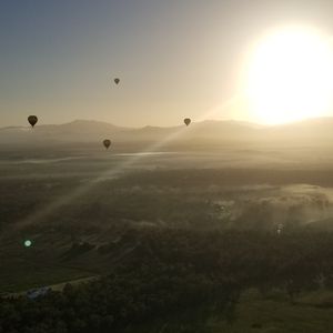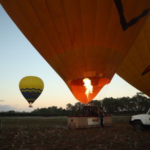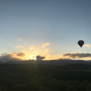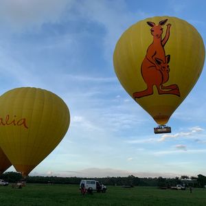 年越しをケアンズで過ごしたので、何か神秘的な体験をしたいと思い1/2に参加しました。新年早々催行されていてよかったです。3:50にホテルのロビーまで迎えに来てくださりました。ドライバーの方は英語と中国語が話せるようでした。車内では日本語の案内ビデオも流れるので言語面での心配はありませんでした。家族やカップル、おひとりで参加されているかもいらっしゃいました。1度トイレ休憩をはさんで、離陸地点の高原に到着しました。ホテルを出たときは雨が降っていたのですが、マリーバに到着するときれいな朝焼けが見られてこれだけでも感動ものでした!ツアー参加者内で前半、後半搭乗に分けられるということは把握していたのですが、マリーバに到着したときにすでに前半に搭乗する人が到着準備されていました。サンライズを気球から見たかったので、前半がいいな~と思っていたので、もし事前にどちらに搭乗するのかが分かっている場合は早めに伝えていただけると良かったかなと思いました。この点から☆は4つにさせていただきました。しかし、後半搭乗でも十分に楽しむことができました!!離陸していく気球の写真がとれたり、スタッフの方が野生のカンガルーを見つけて教えてくれたりとても貴重な経験ができました。気球はふわっと上昇するので怖さは感じませんでした。離陸場所も着陸場所も草がうっそうと生えており、またぬかるんでいる場所もあったため、何か羽織るものと長いパンツ、スニーカーでの参加をお勧めします。