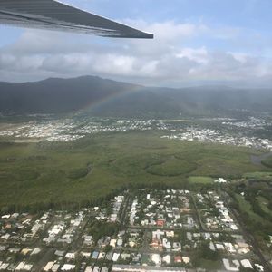 当日は曇り空でしたが雨は止み運良く決行、素晴らしいグレートバリアリーフを見ることができました。上空から見るグリーン島やミコマスケイ、海のグラデーションがとても綺麗でした。また雨上がりで虹もかかり得した気分になりました。上空からでないとこの感動は味わえません。ぜひこのツアーをおすすめします。