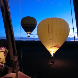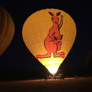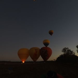 暗闇の中に炎の明かりで気球の柄がうかびあがっていてとっても幻想的な風景でした。