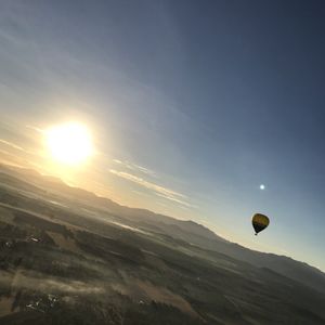 地上からみていても合計6つの気球がいろんな高さで見えていてきれいな朝日との風景も最高でした!!!
