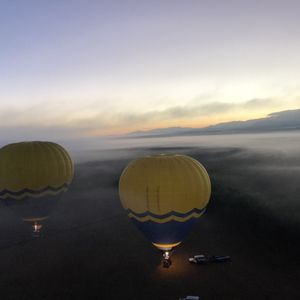 熱気球体験は、順番にもよりますが気球をバーナーで膨らますところから飛び立つ瞬間まで見ることができ、乗る前から素晴らしいものを見ることができました。待ち時間が寒いので、薄着の上に厚手のパーカーやウルトラライトダウンがあると良いと思います。気球に乗ってからも綺麗な景色とともに、ゆったりとした時間を過ごせました。気球を膨らませるバーナーの熱があついので、乗る前に厚手の上着は脱いでも良いと思います。場所にもよりますが、薄手でも羽織りものがないと頭や腕があついです。