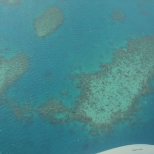 グレートバリアリーフまでは少し距離があったので、離陸してからケアンズの街並みと海を見下ろし、5分ほどたったら、きれいなグレートバリアリーフが見えてきました。