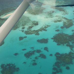 少し曇っていたので、どうなのかと思っていたのですが、離陸してから晴れ間が見えてきたので綺麗なエメラルドグリーンを見る事が出来ました。パイロットの方に「コアラリーフは結構小さいので見つけづらいです」と聞いていたせいか、すぐ見つける事ができました(^o^)セスナは殆ど揺れなかったので快適な遊覧飛行でした。45分のコースにすれば良かったです。