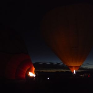 薄暗いなかの気球はとてもすてきで、それらを追いかける時間も楽しかったです。