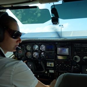 女性のパイロット!ティアドロップのサングラスがとでも似合っていてかっこいい!!