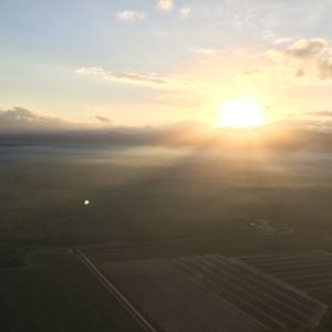 熱気球はどんどん上へ昇っていき、眼下には広い農場や林や川が、目の前には日の出が。絶景でした!