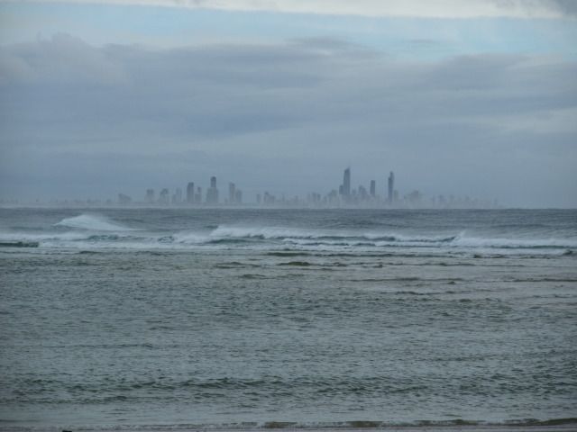 雨模様でしたが、海越しにサーファーズパラダイスの