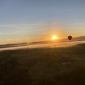 この日は霧が出ていたので待機場所で15分ほど待機しスタート。初めての気球で安全面を心配していましたが、ビデオやガイドさんから事前説明がありました。風が弱かったからか揺れや浮遊感がなく空の上でも快適に過ごせました。上空からみたオーストラリアの景色は壮大で感動しました。操縦士さんも面白い方で終始楽しませていただきました。着陸後の軽食も美味しかったです。日本人にとっては朝ごはんになる量だと思います。総合的に非常に満足しています。勇気を出して参加してよかったです。
