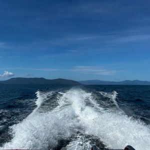 行きの船はほんとに揺れて酔ってしまうので、酔い止めを持ってくることをほんとにおすすめします。私も酔ってしまい、30分〜1時間ほどはきつかったです。😅ガイドなしのツアーを選びましたが、泳ぐのが得意ではない人は、あまり遠くまで行くのは難しいかなと思いました。私も実際あまり泳ぐのに自信は無かったので、そんなに多くの魚は見れませんでした。また、グレートバリアリーフも見れませんでした。それだけが心残りです。私は奇跡的に帰りの船を待ってる間に亀を見ることが出来ました。それと、swimスーツを着ていても肩が焼けてしまったので、日焼け止めを塗り忘れないことをおすすめします。帰りの船は揺れませんでした。
