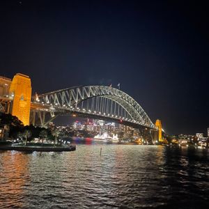 昼のチケット交換時、5時20分に船が来るものだと思っていましたが、到着せず遅れて出航となり、ハーバーブリッジも後ろの空が暗くなりサンセットを過ぎてちょっと残念でした。食事は、お魚料理を選び堪能出来ました。戻りのハーバーブリッジとオペラハウス、また、港のビル群は、綺麗でした。船の揺れ具合も心地よいし、クルーズの雰囲気を楽しむことが出来ました。