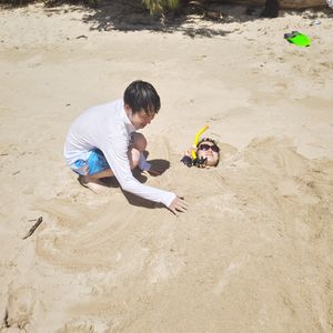 娘を埋めてると近くにいた白人老夫婦が笑ってました。