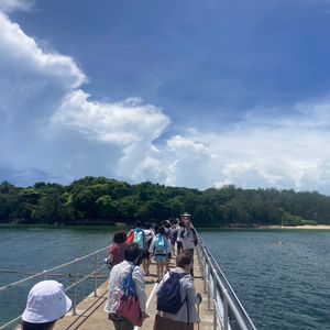 嵐の予報もあったが、当日は乗船中は雨、降りたら止む、という雨女の姉ちゃんと、最強の晴れ女徳島の祖母ちゃん効果?で島は程よい涼しさだった。姉ちゃんは得意の衣装で島のビーチを堪能し、僕とシュノーケリングを楽しんだ。シャワーの設備もしっかりしていた。手続きができていればロッカーを使えたのだが、、、。現金では使えないので、次回は気をつけたい。普段見れない魚や珊瑚を間近で見ることができた。