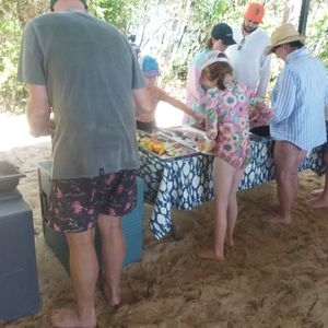 昼食は、前日にスーパーで購入したパンやスナック、果物を持参して、ビーチで楽しみました。