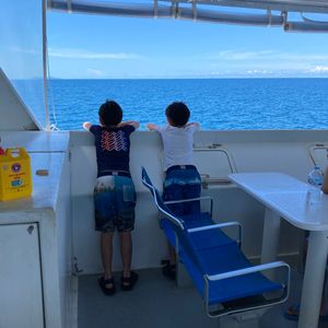 海に入った瞬間からサンゴの世界で驚きました。足のつかない海は初めてなので子供たちが怖がるかと思いきや、美しい魚を見つけては夢中になってぐんぐん泳いでいました。Jimmyさんがボートの上からウミガメを見つけて教えてくれます。映像でしか見たことのない海の世界にただただ感動!ずーっと見ていたかったです。