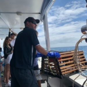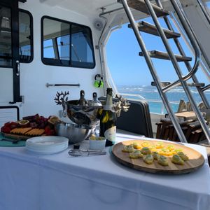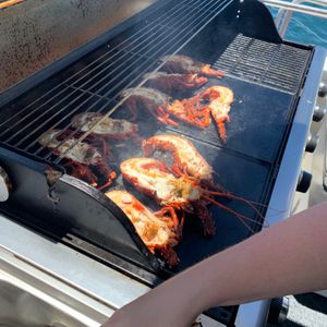 ウェルカムドリンクで迎えていただき、フィンガースナックを経てロブスター漁体験をしました。捕獲したロブスターはBBQコンロで焼いたり、刺身でいただいたりと美味しくいただきました。