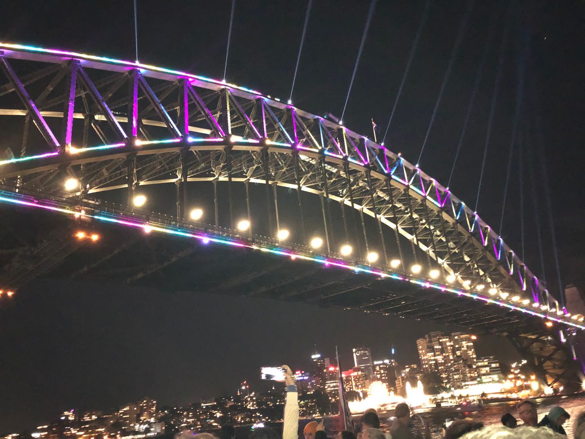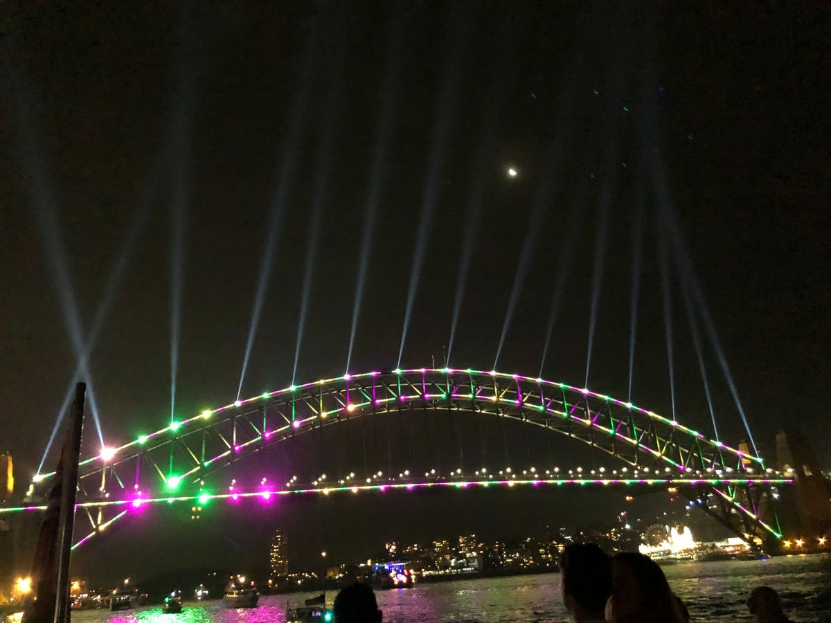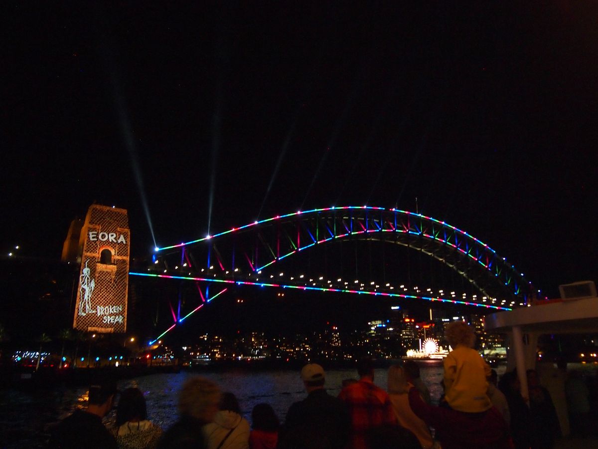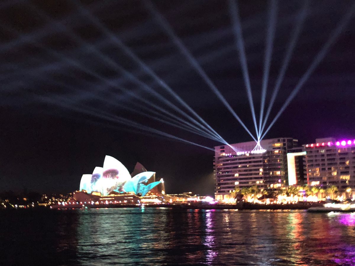 Vivid sydneyでライトアップされたサーキュラーキー、オペラハウスを海側から鑑賞。キラキラの街がとても印象的でとても良かった。食事付きのプランもいいかと思いますが、お得だし短時間で目的を達成できるしとおすすめです。