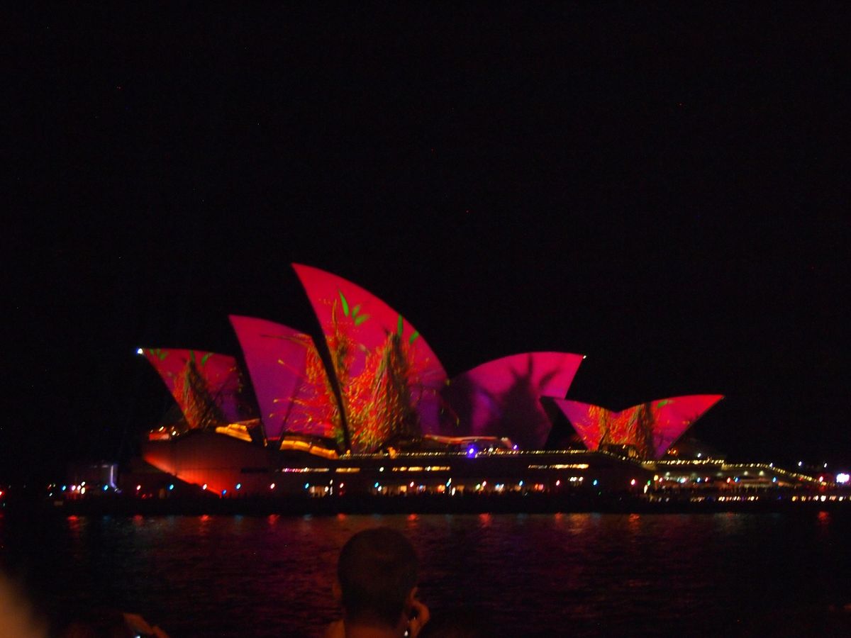 オペラハウスの真正面に停船するのは数分程度ですが,ビビッド・シドニーの一番の見どころを最も近くから見れるという点で価値があります。停船時,オペラハウスは左側でした。