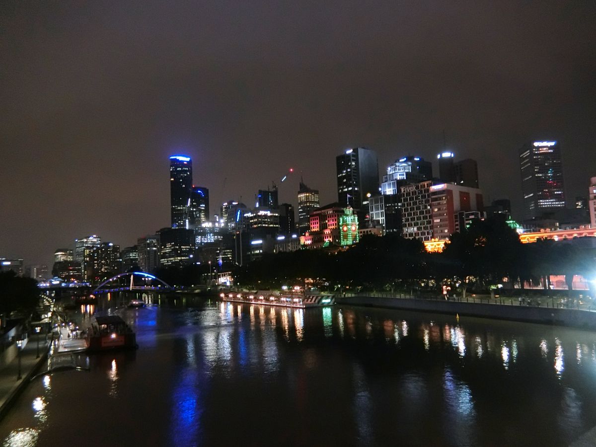 街の様子がわかって楽しいので、可能であれば必ず訪れた街ではディナークルージングをするようにしています。(パリ、チューリッヒ、ニューヨーク、バンコク、シドニー、ケアンズ)当日は天気があまり良くなかったのと、メルボルンはライトアップが少ないせいか、川からの景色はまあまあでしたが、ドリンクは飲み放題で、お食事もおいしくサービスもよかったので、よしとします。船着場周りは賑やかで景色もよく、おいしそうなレストランも立ち並ぶ素敵なエリアでした。