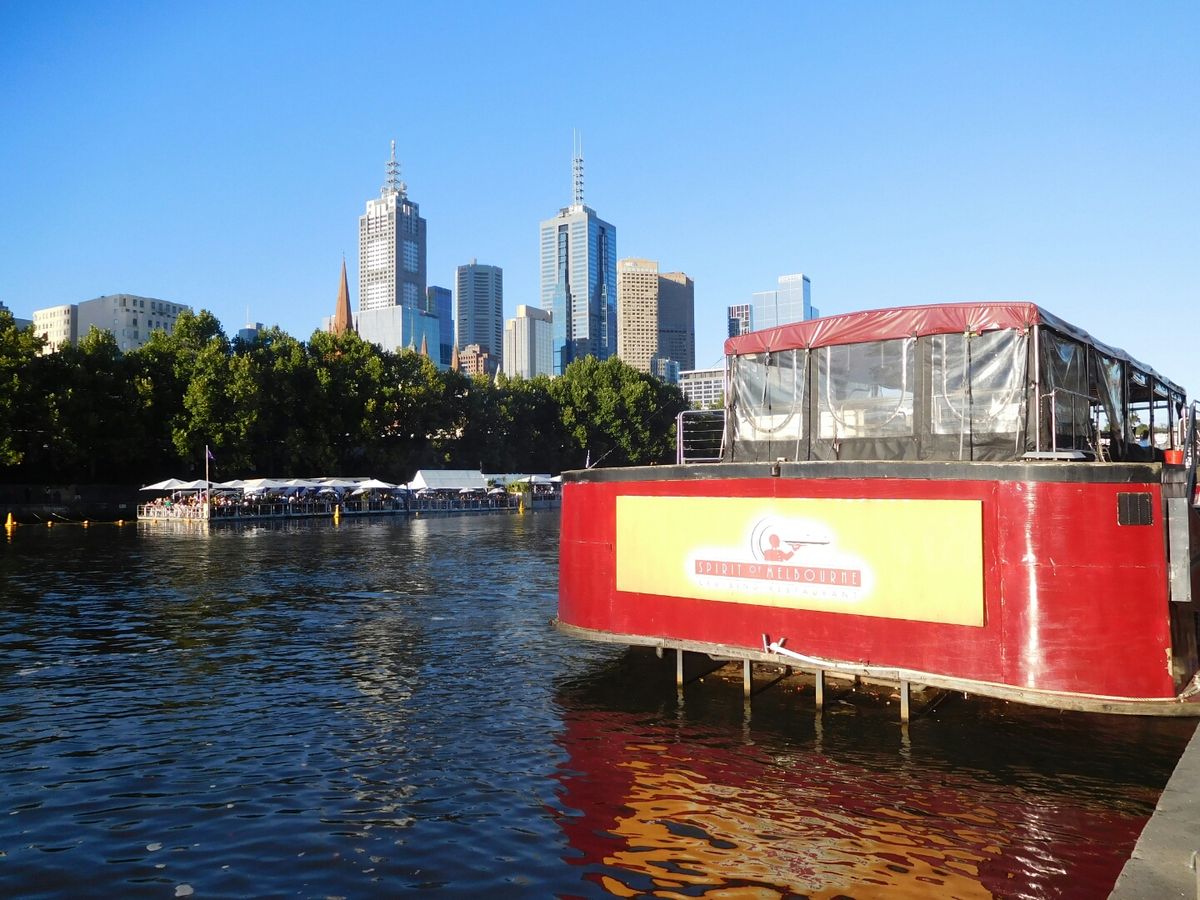 食事が一段落すると多くの乗客がグラスを持って二階へ上がっていきました。コース料理はボリュームがありケーキまで完食することはできませんでしたが、皆楽しそうに会話をし、あっという間の3時間でした。乗客は西洋人がほとんどでした。メルボルンの風景を見ながら、かなりゆっくりとしたスピードでヤラ川を進むこのクルーズは穏やかな時間を過ごすことができ、メルボルン旅行の良い記念となりました。スタッフの方々も皆親切で、何度もドリンクを入れに来て下さりました。