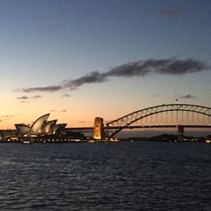 ご飯は、量も日本人にはちょうどかな。ちょうどご飯を食べ終わって外に行くとオペラハウス付近でとてもキレイでした。出発して少ししたらサンセットで夜景と両方をブリッジを楽しむことができました!