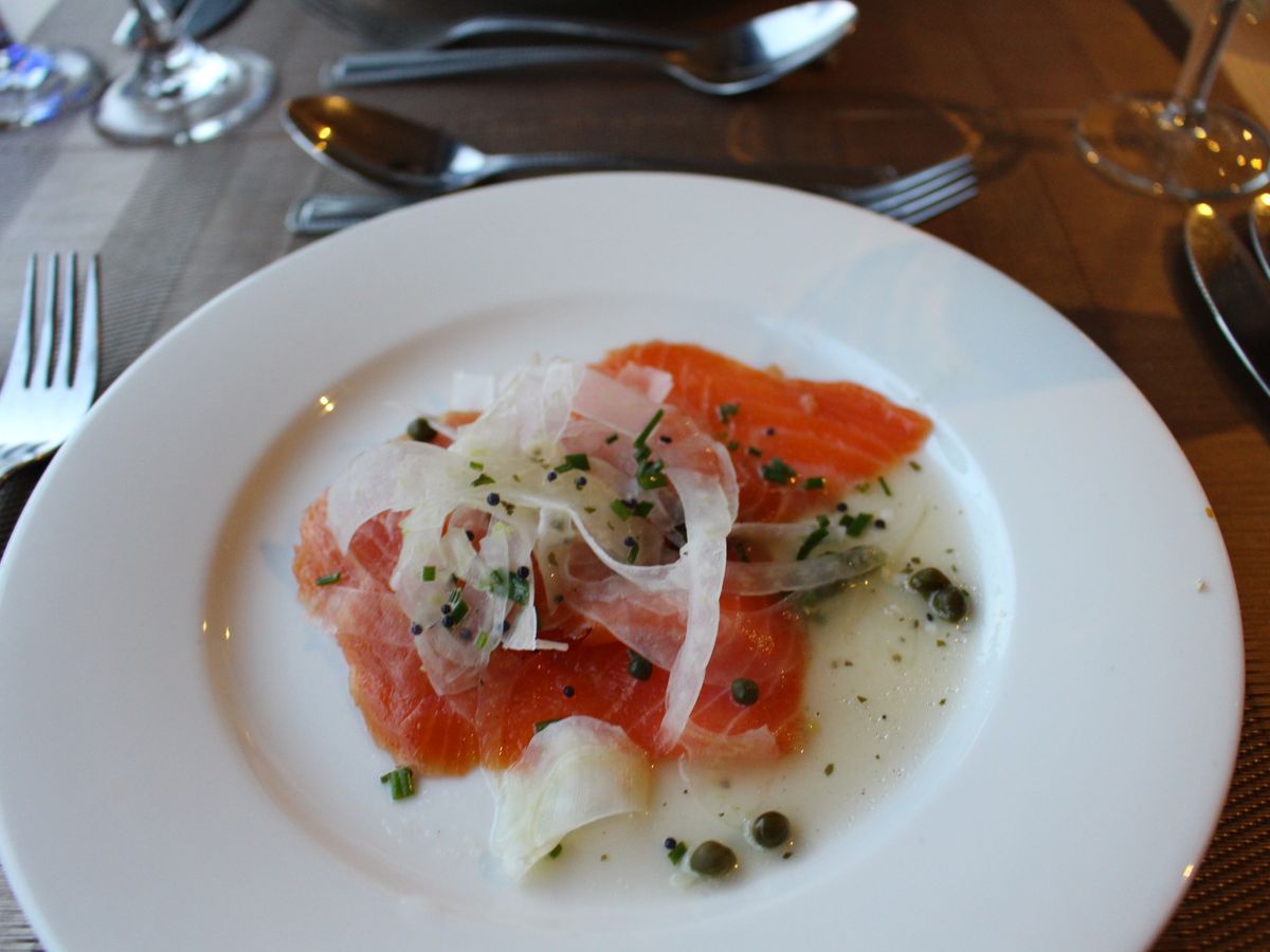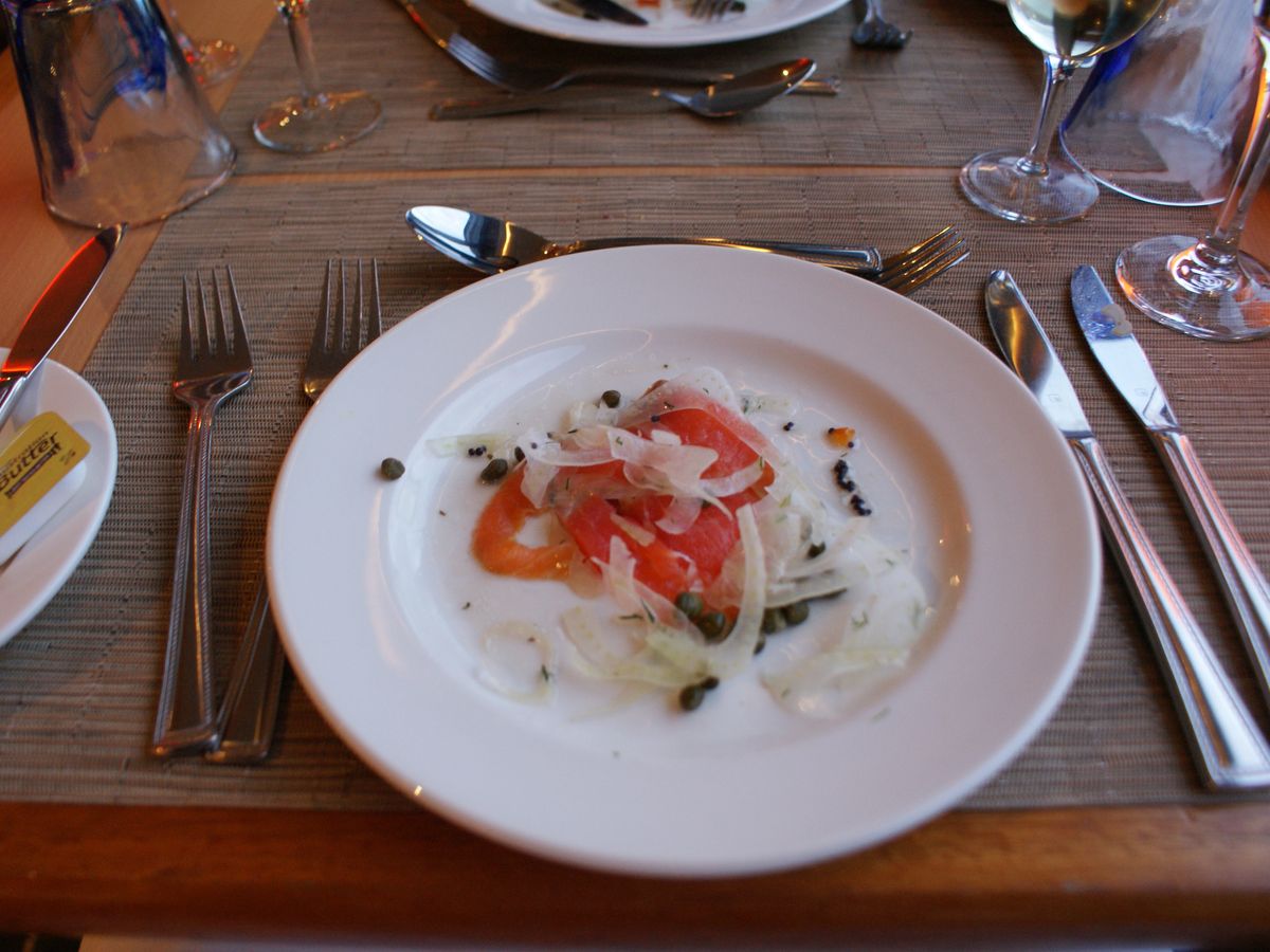 先週から新メニューとなり、メインとデザートはあまり変わっていませんが、前菜のスモークトラウトが地中海風前菜盛り合わせに変わりました。