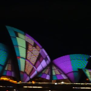 羽田夜便でシドニーに朝着をした日がVivid Sydneyの最終日でした。眠いのに。。。と思いつつ参加しましたが大きな船であまり揺れず、素晴らしいライトアップでした。特に、オペラハウスをキャンバスとしたプロジェクションマッピングは、普通でも白くて美しいオペラハウスが鮮やかでさらに美しかったです。港町もカラフルなライトアップでとても楽しめました。往復の送迎ナシプランでしたが、受付場所にさえたどり着ければ、チェックインにまごつくことも無く、クルーズだけの39ドルはとてもお安かったと思います。