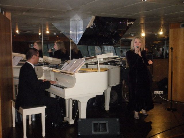 シドニー湾をゆっくりクルージングしながら、ディナーをいただきますが、船内ではピアノの生演奏と歌手のデュエットがあり、豪華客船に乗った貴族気分が味わえます。