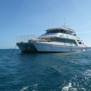 ここに書いてあった書込みがいい事ばっかりだったので、ちょっと期待はずれだった。確かにきれいなビーチで、のんびり出来るけど、参加の2日前に行ったGBRに比べると海の色は全然。朝早くに出て、車に乗っての長い移動時間を考えると再度参加したいとは思えませんでした。また、海に出てからの揺れが激しく船酔いにも要注意です。