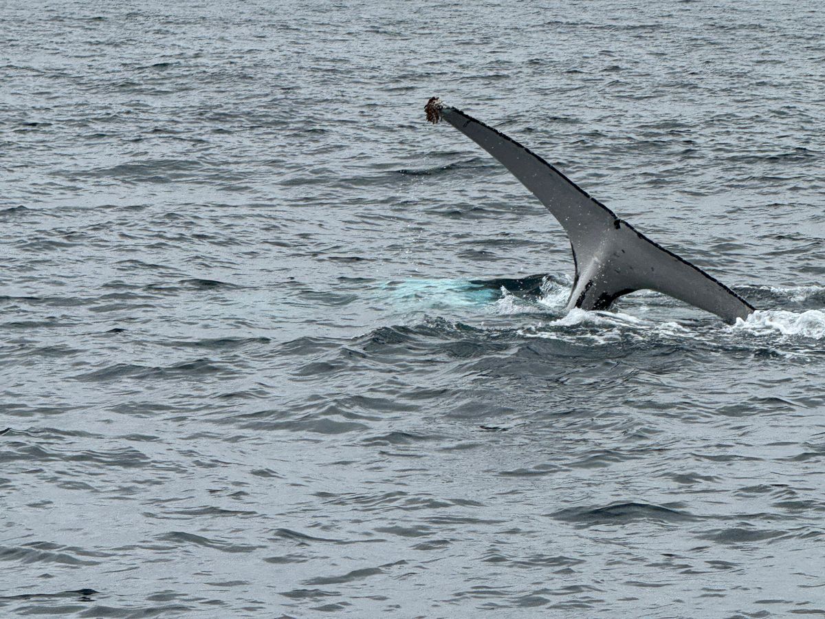 何度も参加させてもらいましたが、今回初めて2頭同時に鯨を観察できて良かったです。前半はが観察できず、船酔してしまいました。が、後半観光客の皆さんの歓喜が聞こえたら、何と鯨達が船の下にまで潜り抜ける様子が見れました!歓迎です!まさかこんなに近くで見れるなんて。参加した甲斐がありました。来年も船酔い覚悟で?笑参加したいです。ありがとうございました♪