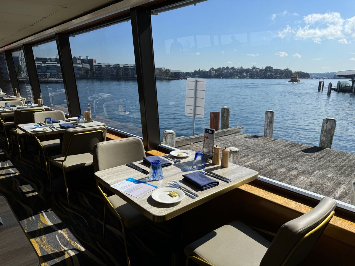 2コースのランチクルーズに参加しました。11時半に集合だったのですが実際には11時45分から受付が開始されました。2つの港から出航しますがキングストリートワーフからの方がオペラハウスやハーバーブリッジをゆっくり楽しめると思います。食事が終わり次第デッキへ出られるとのことでしたが、時間がギリギリで出られませんでした。急いで食べたら出られると思いますがゆっくり食べたい方は3コースの方にするか窓側の席で景色を見るのがいいと思います。ちなみにドレスコードがありましたが、海外の旅行者でtシャツにサンダルの方もいらっしゃったので不可の服装に当てはまらなかったら大丈夫だと思います。ご飯が美味しくて景色もよくて最高でした!シドニーに行く方はぜひ行ってみてほしいです。