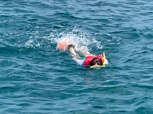 行きのフェリーでは日本人スタッフから島に到着後のシュノーケリングとグラスボートのどちらに参加するかを確認され、3人シュノーケリング、2人グラスボートでお願いしました。