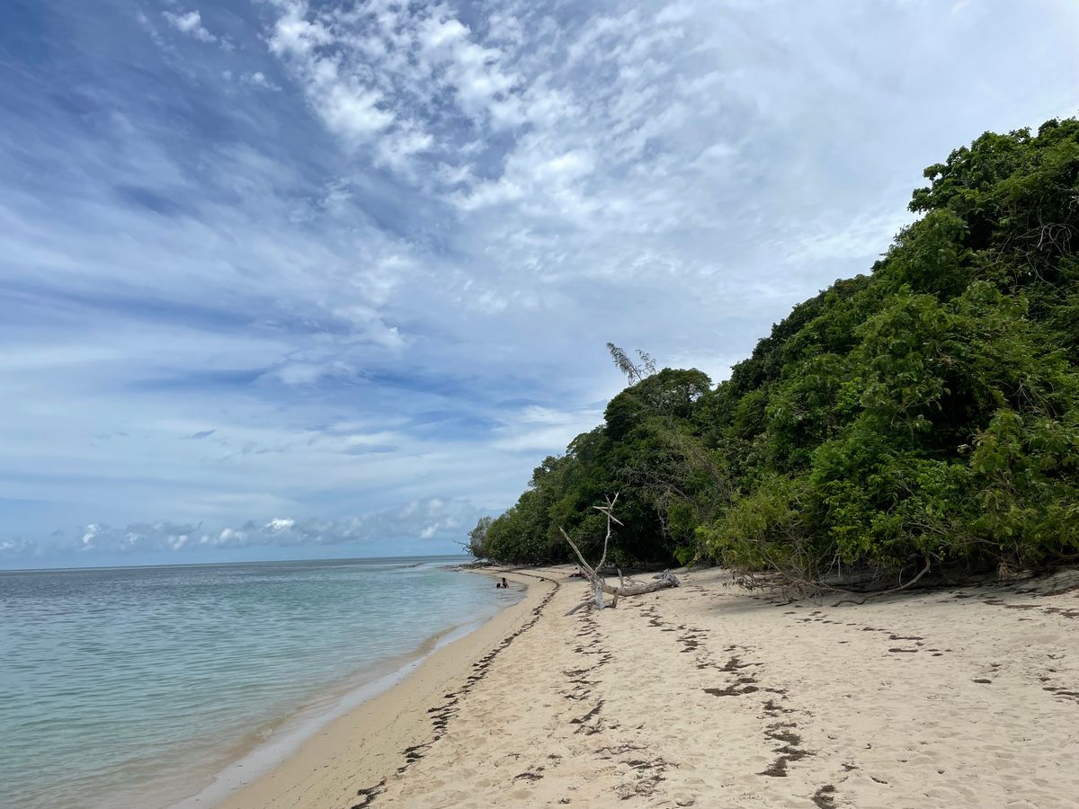 雨季だったのであいにくの空模様でしたが、砂浜がとても綺麗で感動しました。珊瑚礁があるわけではないので魚はほとんどいませんが途中でツアーのお姉さんが浅瀬で魚に餌を撒きます。その時透明なお魚が動き回ってるのみれますよ。