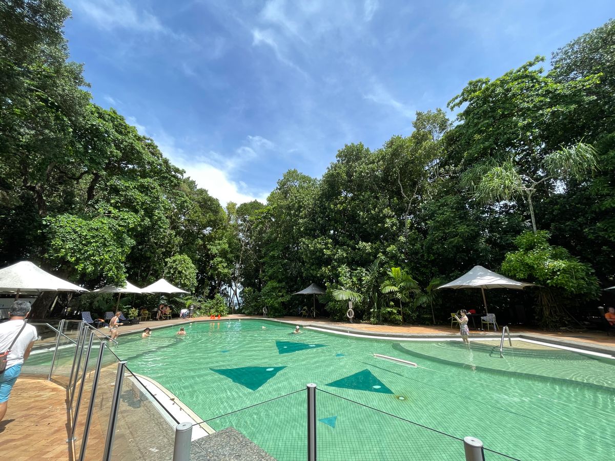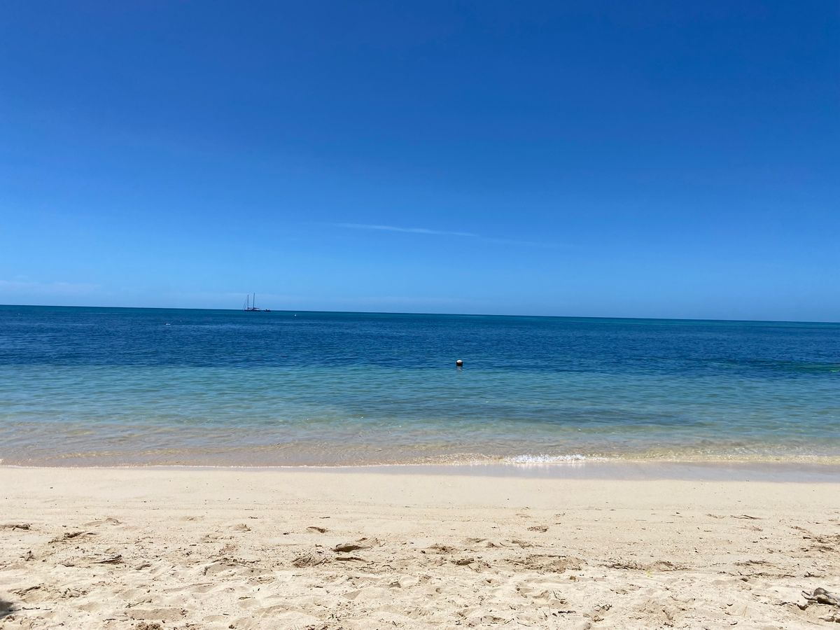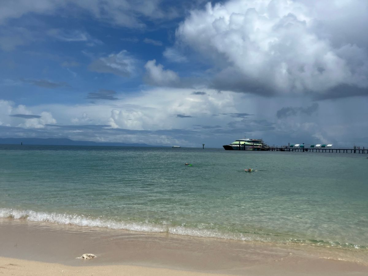 グレートバリアリーフのスタンダード、泳げない人でも楽しめる身近な海といった感じでしょうか。ライフガードがいる初心者向けの砂浜には貸しパラソルやベットもあってゆっくり過ごせます。こちらは足だけでも浸る泳がない人向け、それなりに人も多いのであまり静かではありません。泳げる人はライフガードがいない桟橋の反対側でシュノーケリングを楽んでゆっくりしてました。船に近めの珊瑚エリアまで行けば魚がいますが、手前は浅いのであまりいません。もし、シュノーケリングを楽しみたいのであればポンツーンのツアーに参加するのがおすすめ。段違いで魚がいます。