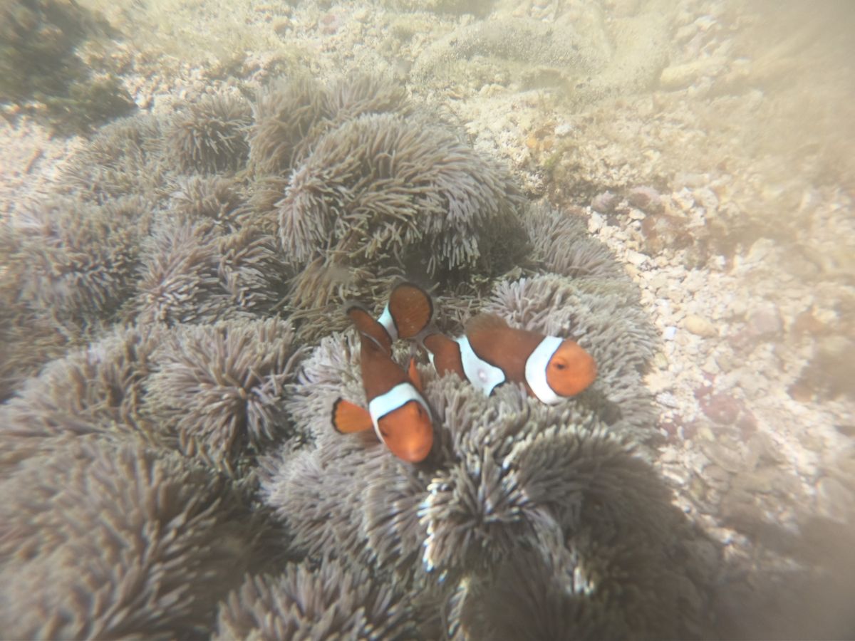 それ以外はずっとシュノーケリングをしていました。至近距離で珊瑚な魚たちが見られるので、とっても楽しかったですが、危険生物も普通にいるので、気を引き締めて泳ぐのが大事です。