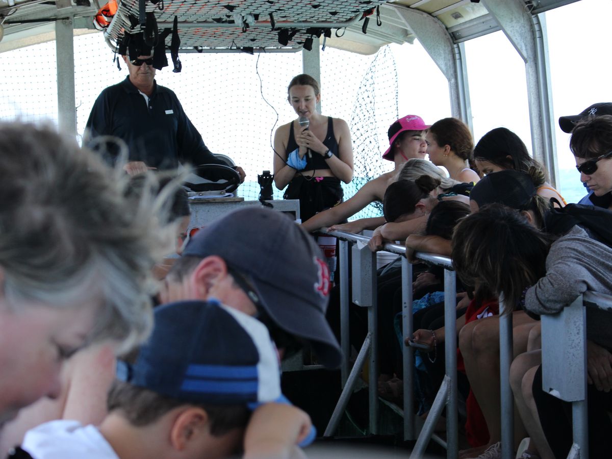 島まで1時間くらいの間に1日の流れの説明を受けます。