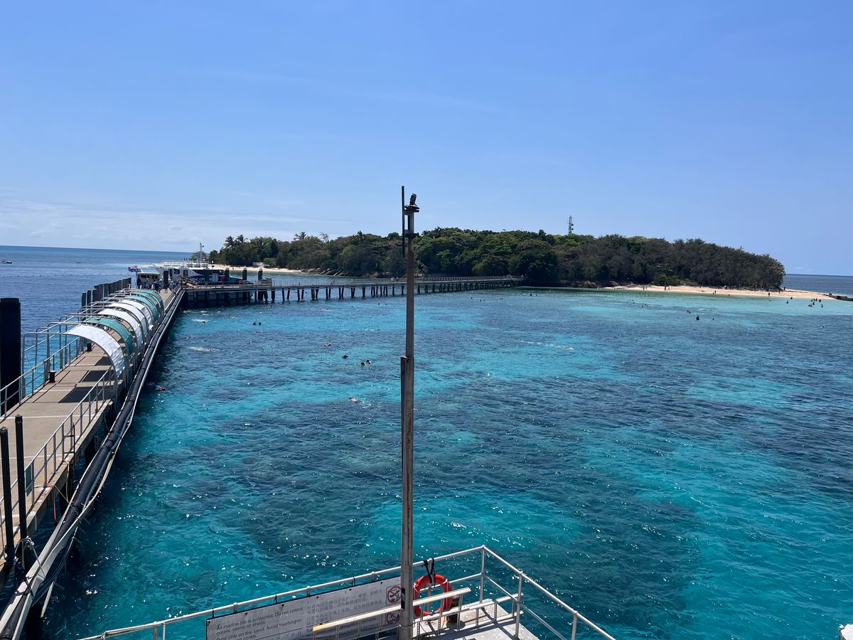 船に乗船してから約1時間、船に揺られて島に到着。この世のものとは思えないくらいの綺麗なエメラルドブルーの海がお出迎えしてくれました。桟橋を進み、レストランの予約をしていたため、いくつかの選べるランチから各々選び、グラスボートに乗船。綺麗な海の中をボートで進み、サンゴ礁や魚たち、運良く亀も見ることが出来ました。その後はビーチでのんびりして帰りの船に乗ってケアンズへ帰港となりました。